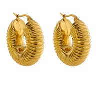 A simple hoop earring but textured rigid design for a simple but trendy look. These hoops are light weight for a great casual look. Can be worn with a cute ponytail, hair down, and every style in between. Enhance your style with these beauties.